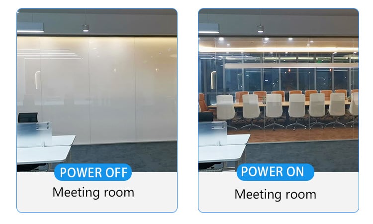 In the absence of an electric field, PDLC smart film remains opaque. When an alternating current is applied, the liquid crystal molecules align in an orderly fashion, transforming the film from an opaque (OFF) state to a transparent (ON) state.